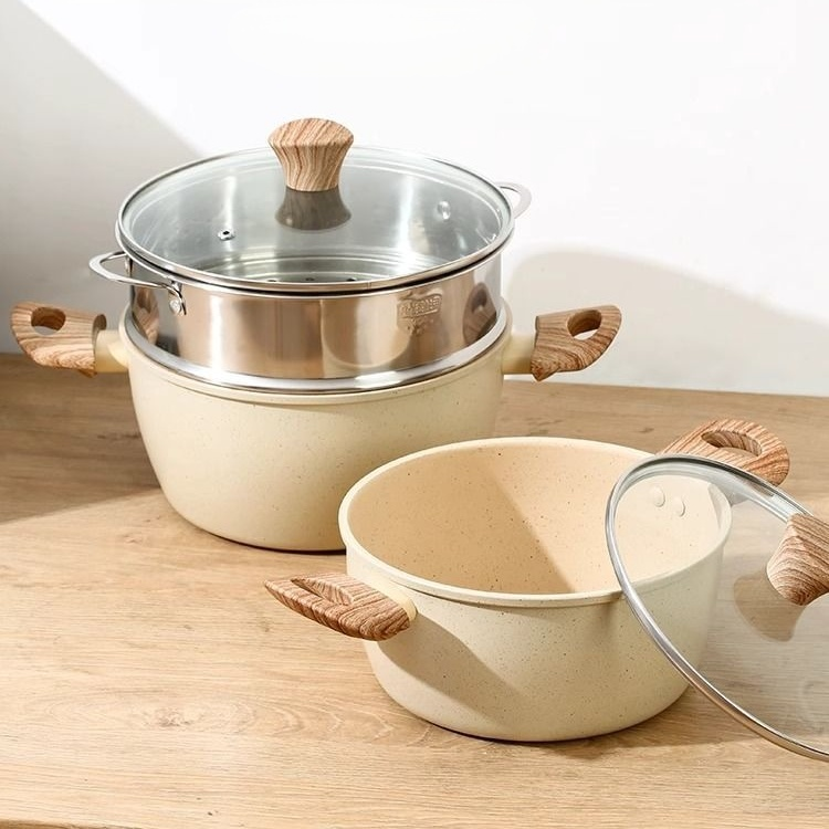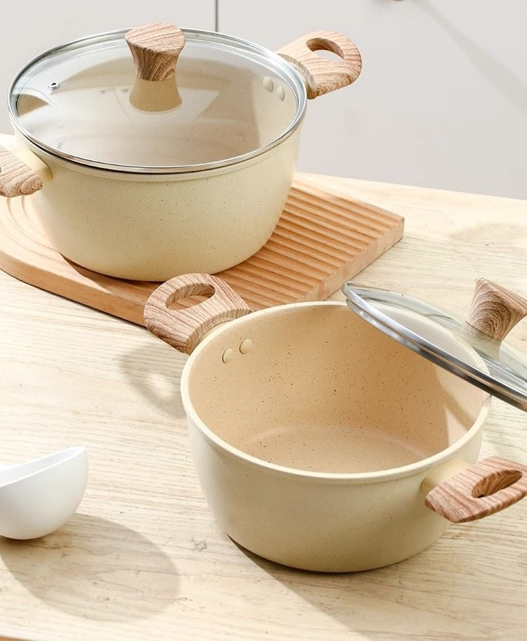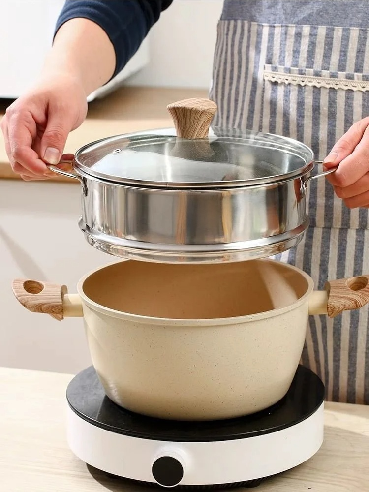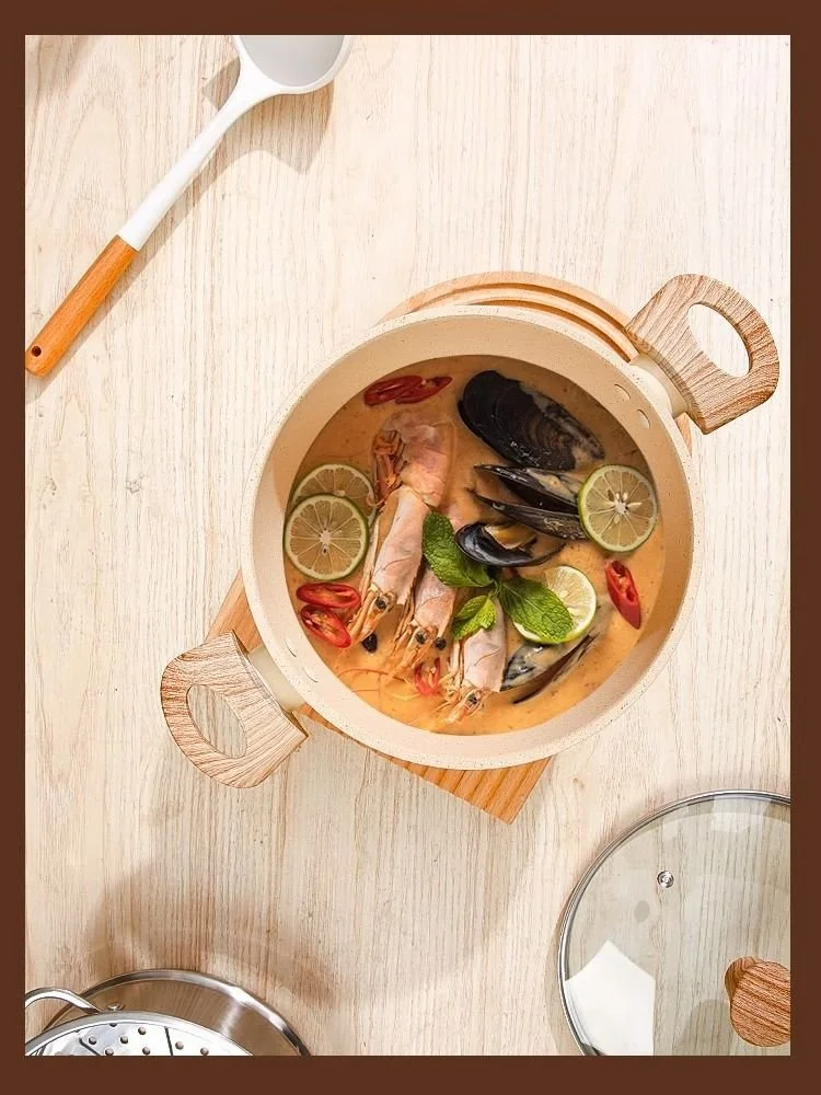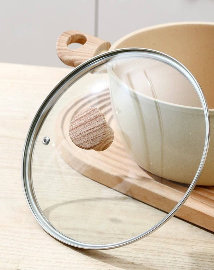 หม้อทำอาหารแบบหนา มีหูจับสองข้างและฝาใสแบบมัลติฟังก์ชั่น